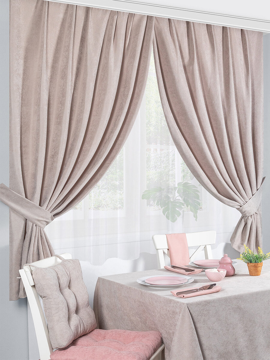 Шторы кухонные / комплект - 2 шт с подхватами / 136*180 см / ткань велюр / для кухни, дома, дачи / Пыльная роза / Altali 2 738 ₽