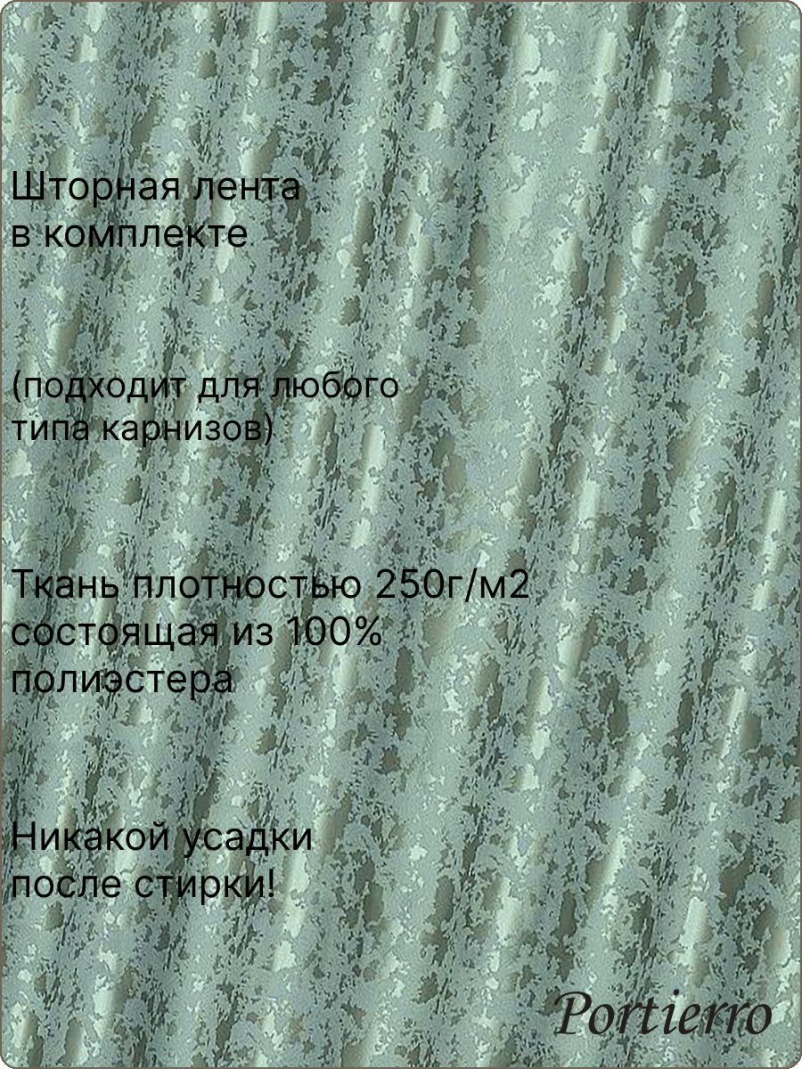 Комплект портьерных штор 300x270 см, 2 штуки, мрамор с узором, цвет: зеленый дым информация: