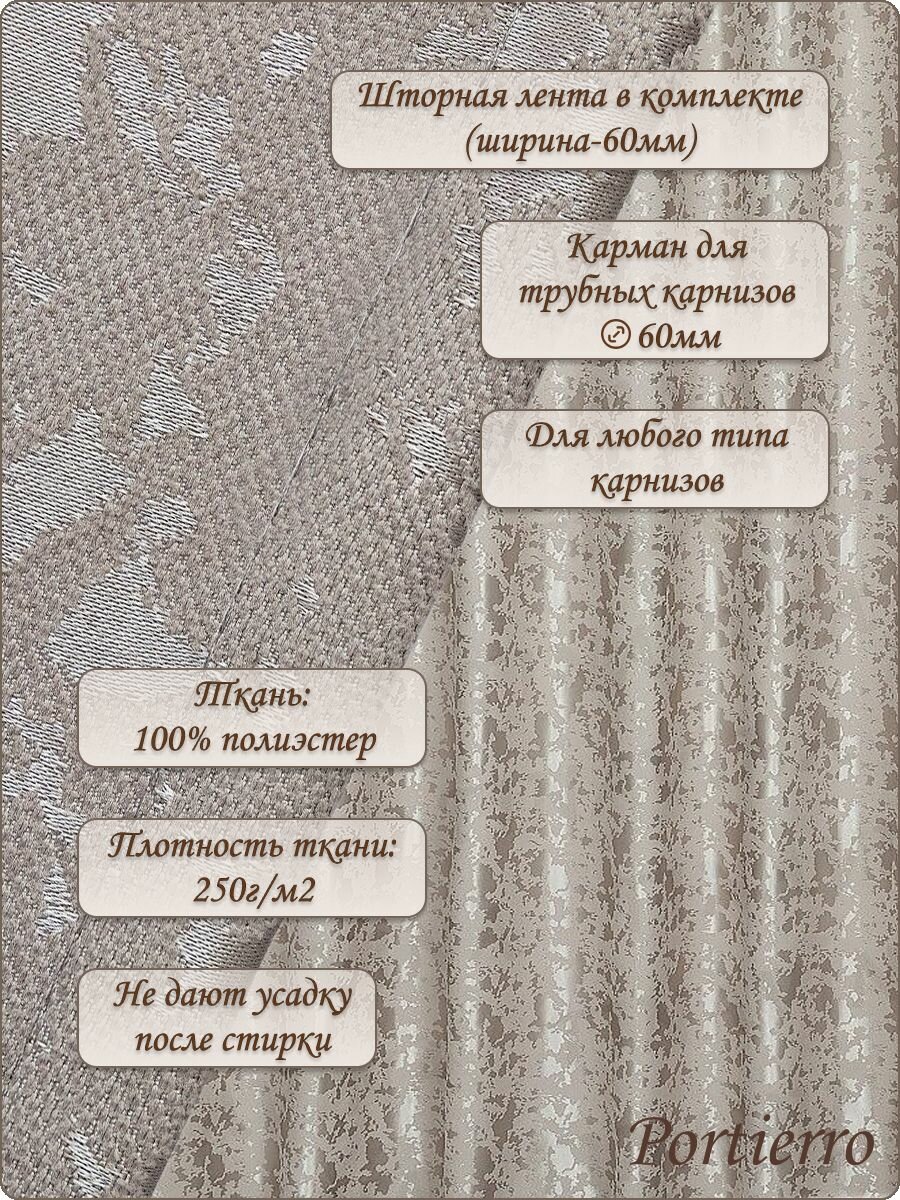 Комплект портьерных штор 500x270 см, 2 штуки, мрамор с узором, цвет: серо-бежевый, бежевый меланж информация:
