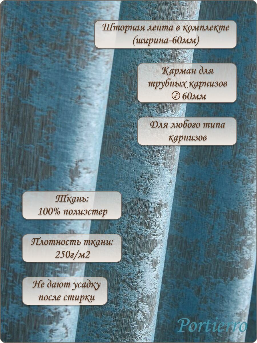 10 цен на Комплект портьерных штор 300x270см, 2 штуки, мрамор с узором, цвет: светло-бирюзовый, аквамариновый