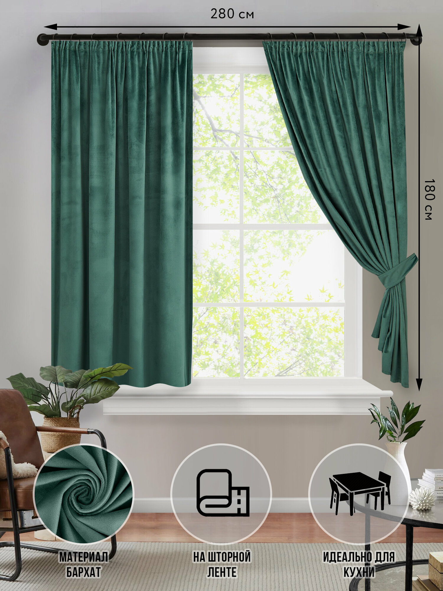 Отзывы на Шторы короткие плотные SvAlMi бархат зеленый для кухни спальни детской