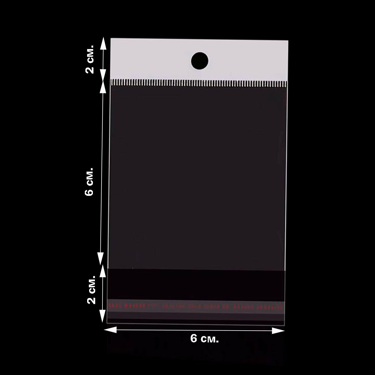 10 цен на 500 пакетов 6х6+4 см с белым подвесом и клеевым клапаном для упаковки из прозрачной пленки бопп