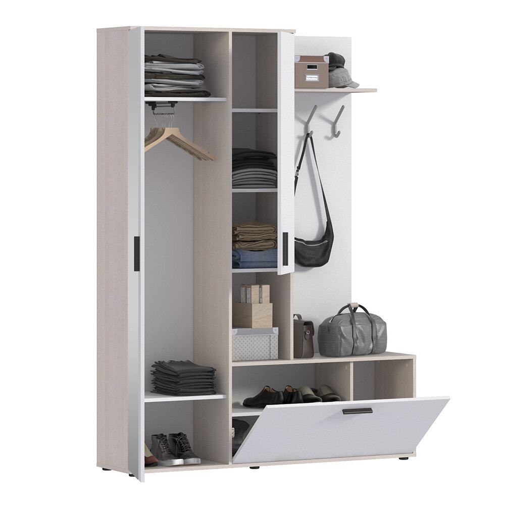 10 цен на Прихожая столплит Саша СБ-2739 с выдвижной штангой, 12 полок, 3 крючка, ЛДСП, Дуб Сонома/Белый, 150х203х35 см