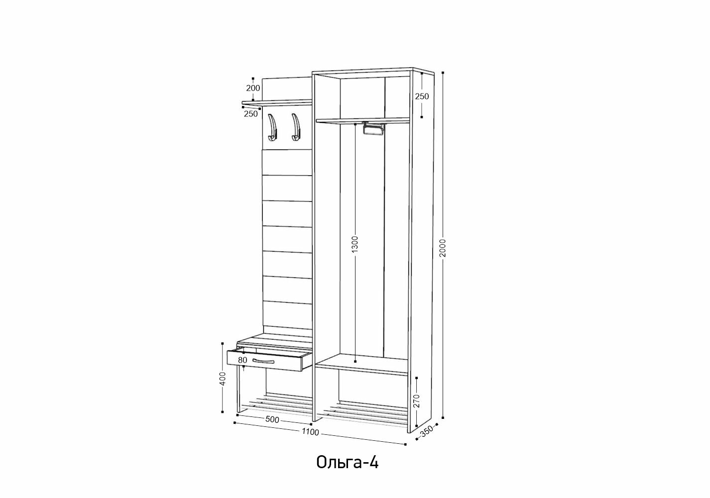 Прихожая Ивару Ольга 4 венге/ясень шимо светлый 110x35x200 информация: