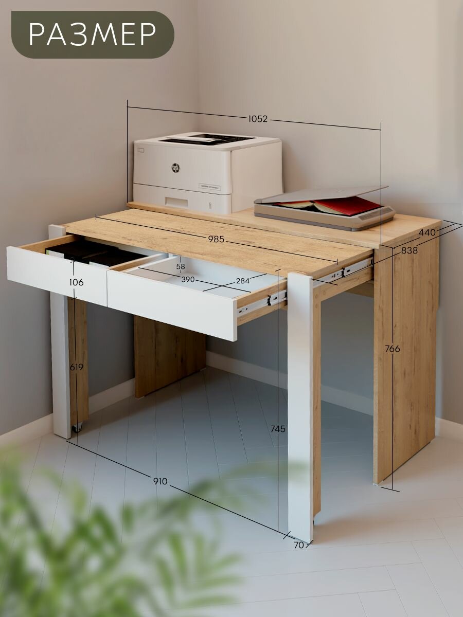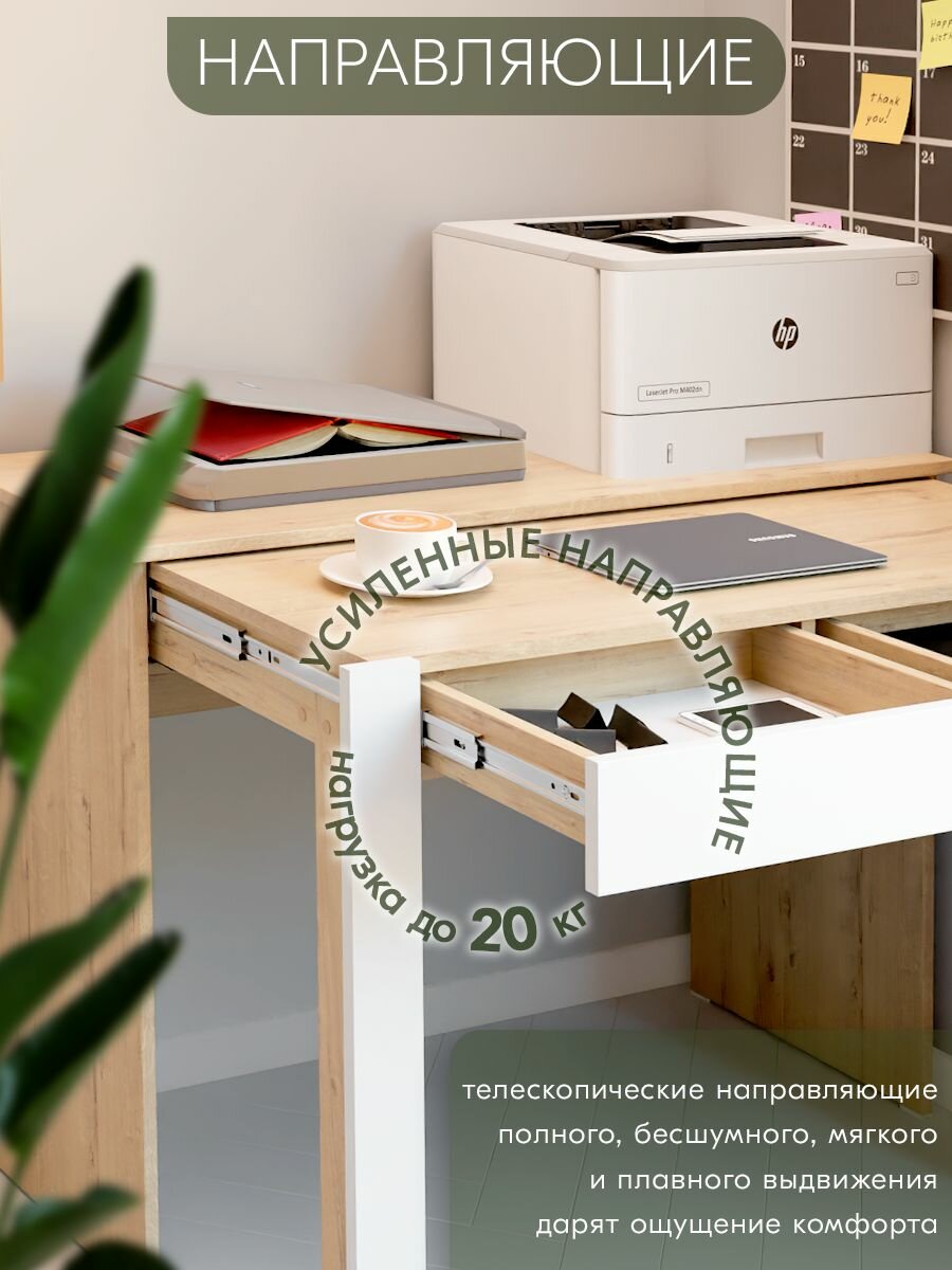 Компьютерный, письменный стол Альфа с ящиками, 106х50.4х76 см, Дуб Крафт золотой / Белый матовый