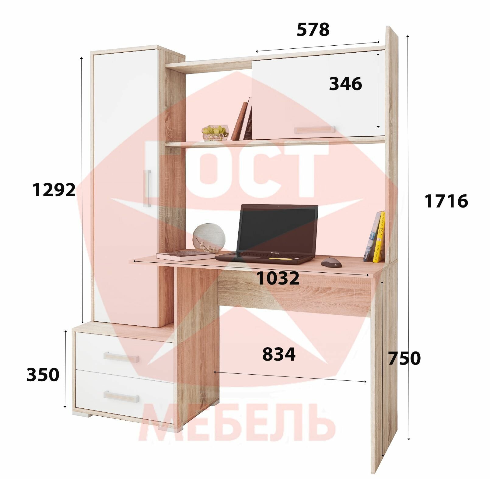 Компьютерный стол тэкс Квартет-9 дуб сонома/белый информация: