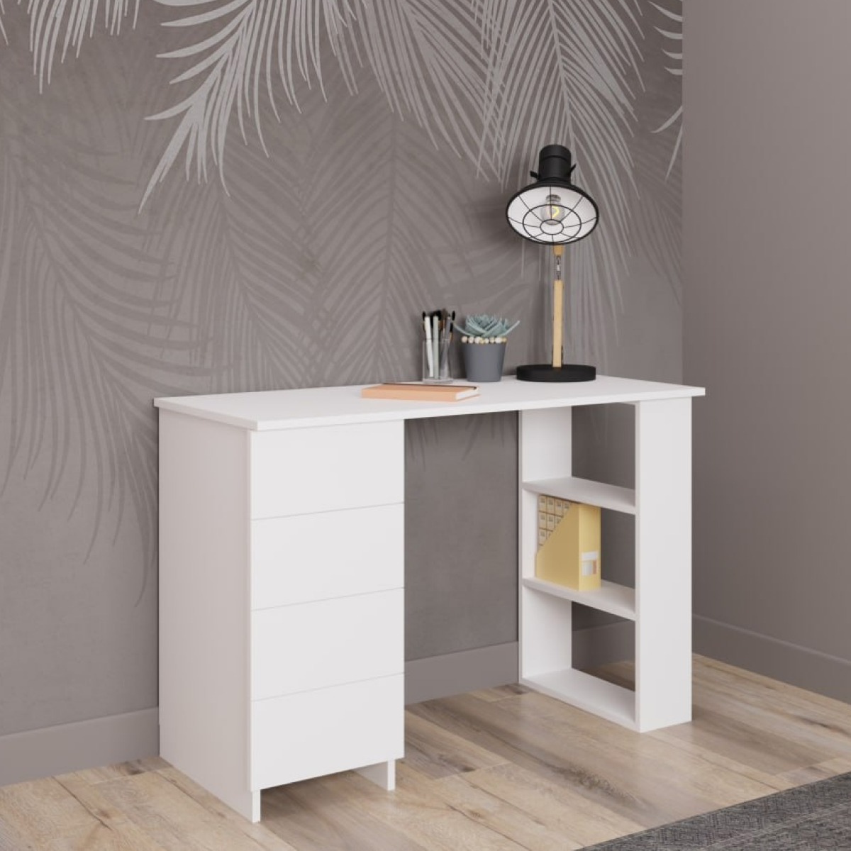 Компьютерный, письменный стол Альфа с ящиками, 106х50.4х76 см, Дуб Крафт золотой / Белый матовый