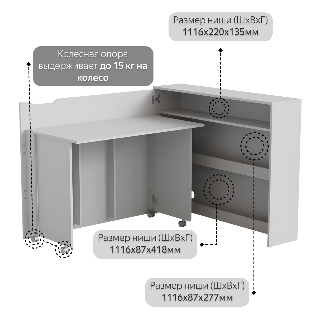 | Особенности | на колесах, угловой |