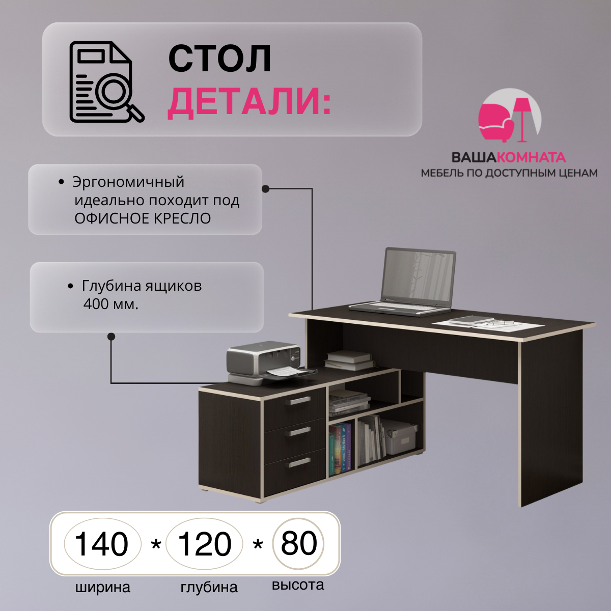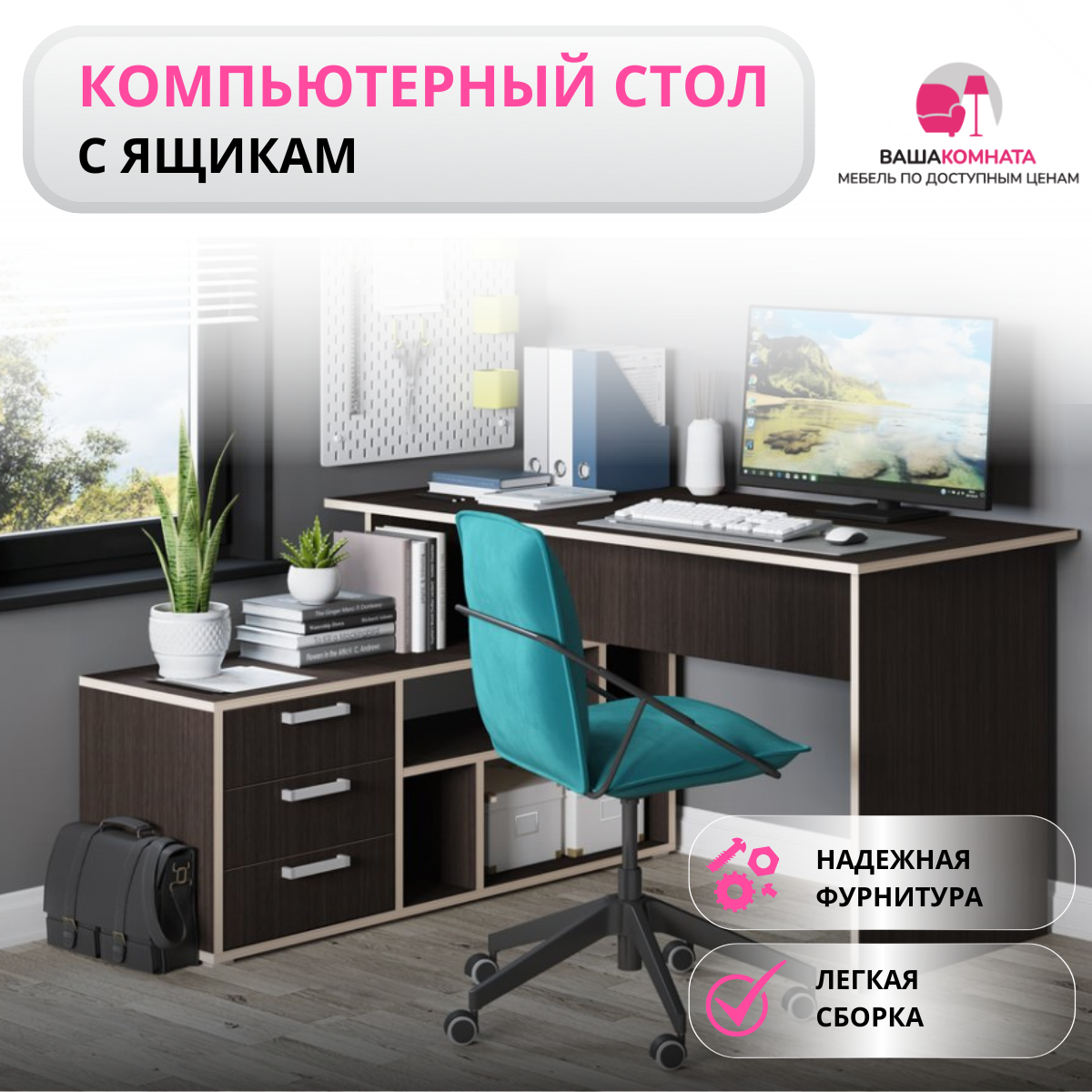 Стол компьютерный для школьника "СК-11" , с ящиками , с тумбой, угловой , Венге 7 229 ₽