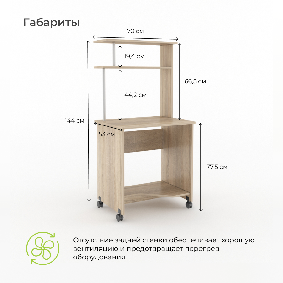 Стол компьютерный БонМебель КС-700, дуб сонома, 70х53х147,6 см информация: