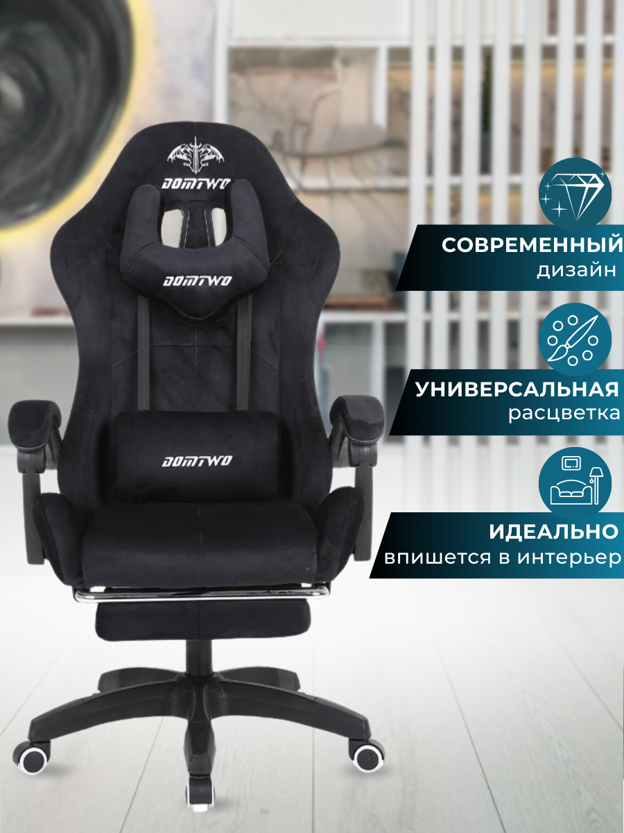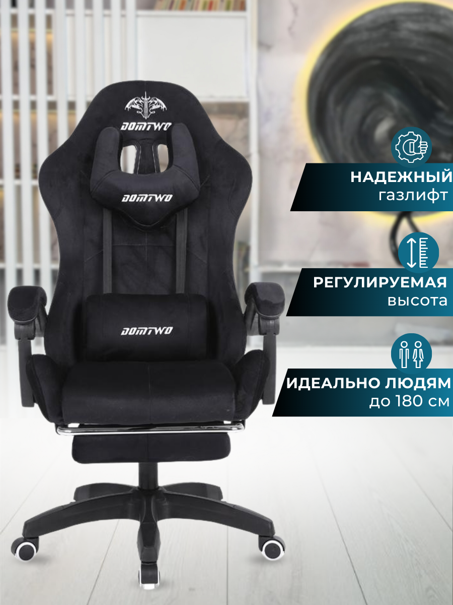 Отзывы на Игровое компьютерное кресло с подставкой для ног, велюр (черное)