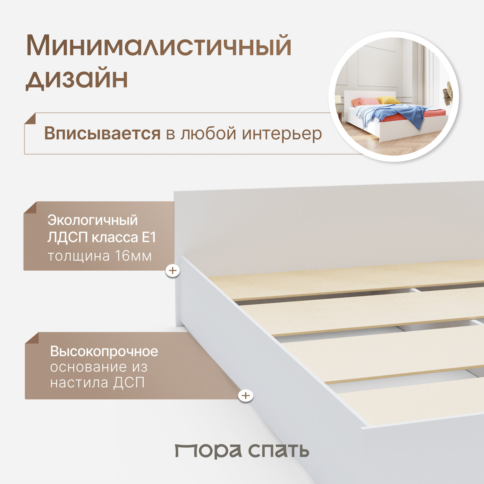 10 цен на Кровать двуспальная Пора Спать Амелина с основанием ДСП, белая, спальное место: 200х160 см, габариты: 204х169 см