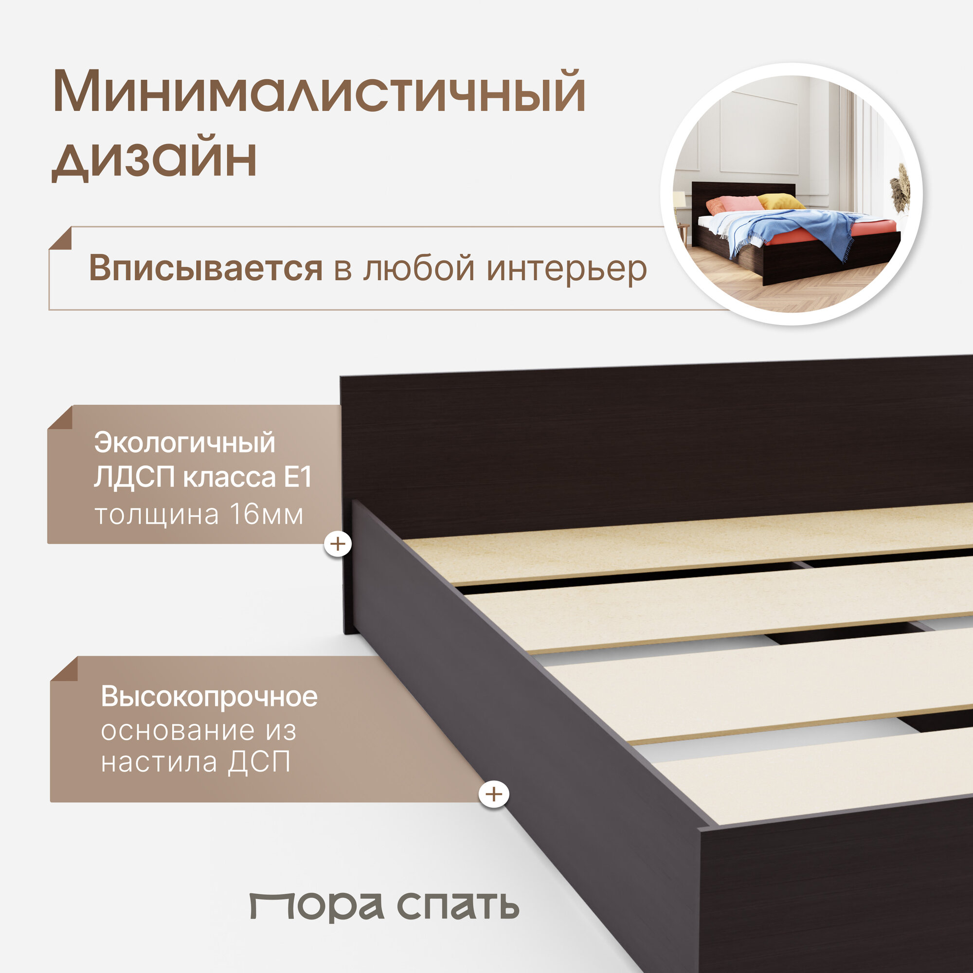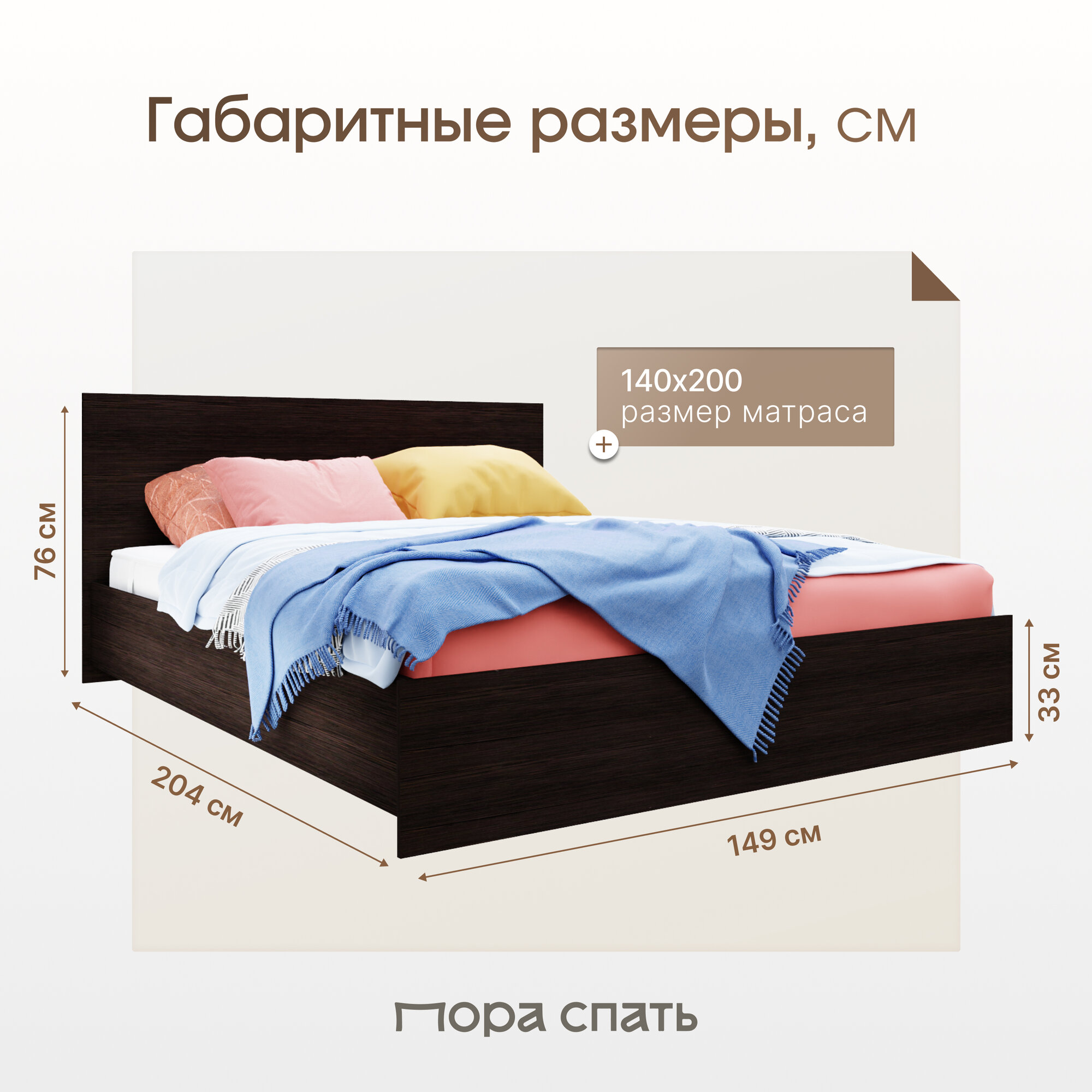 Отзывы на Кровать двуспальная Пора Спать Амелина с основанием ДСП, Венге, спальное место: 200х140 см, габариты: 204х149 см