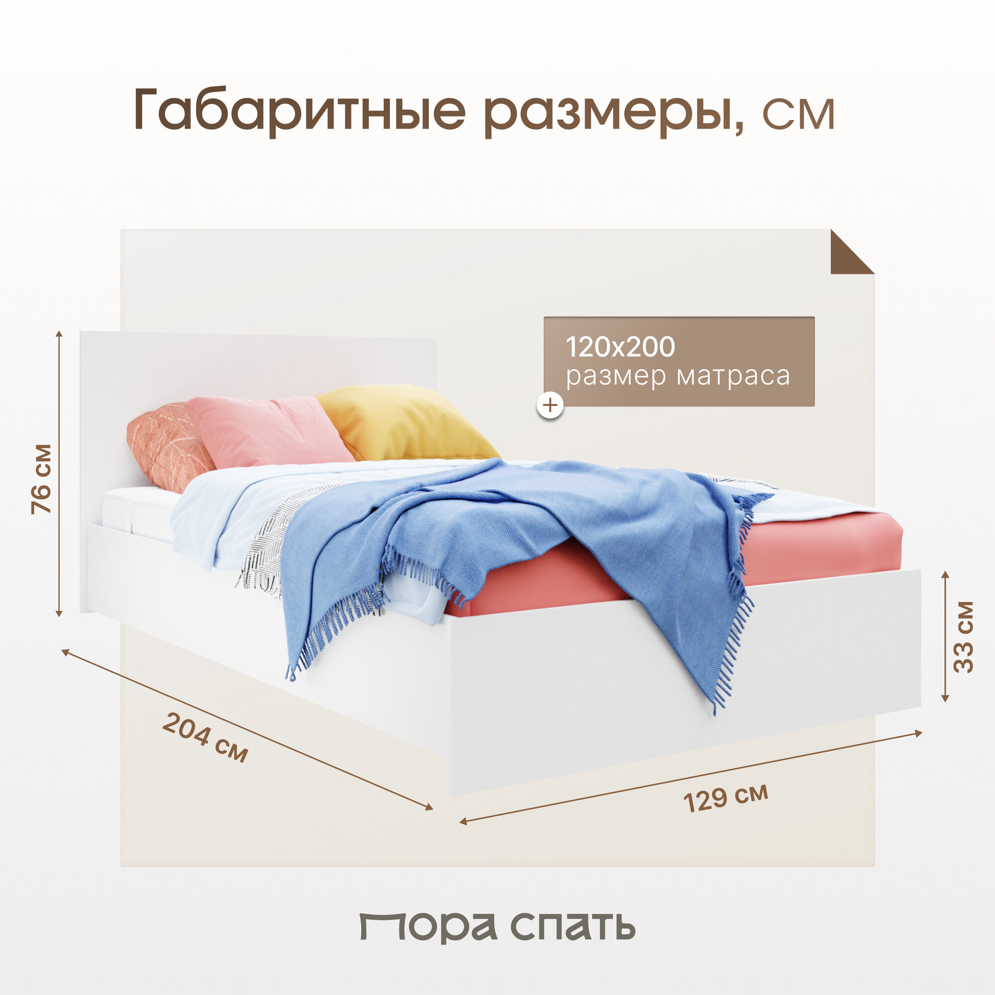Кровать Пора Спать Амелина с основанием ДСП, белая, спальное место: 200х120 см, габариты: 204х129 см информация: