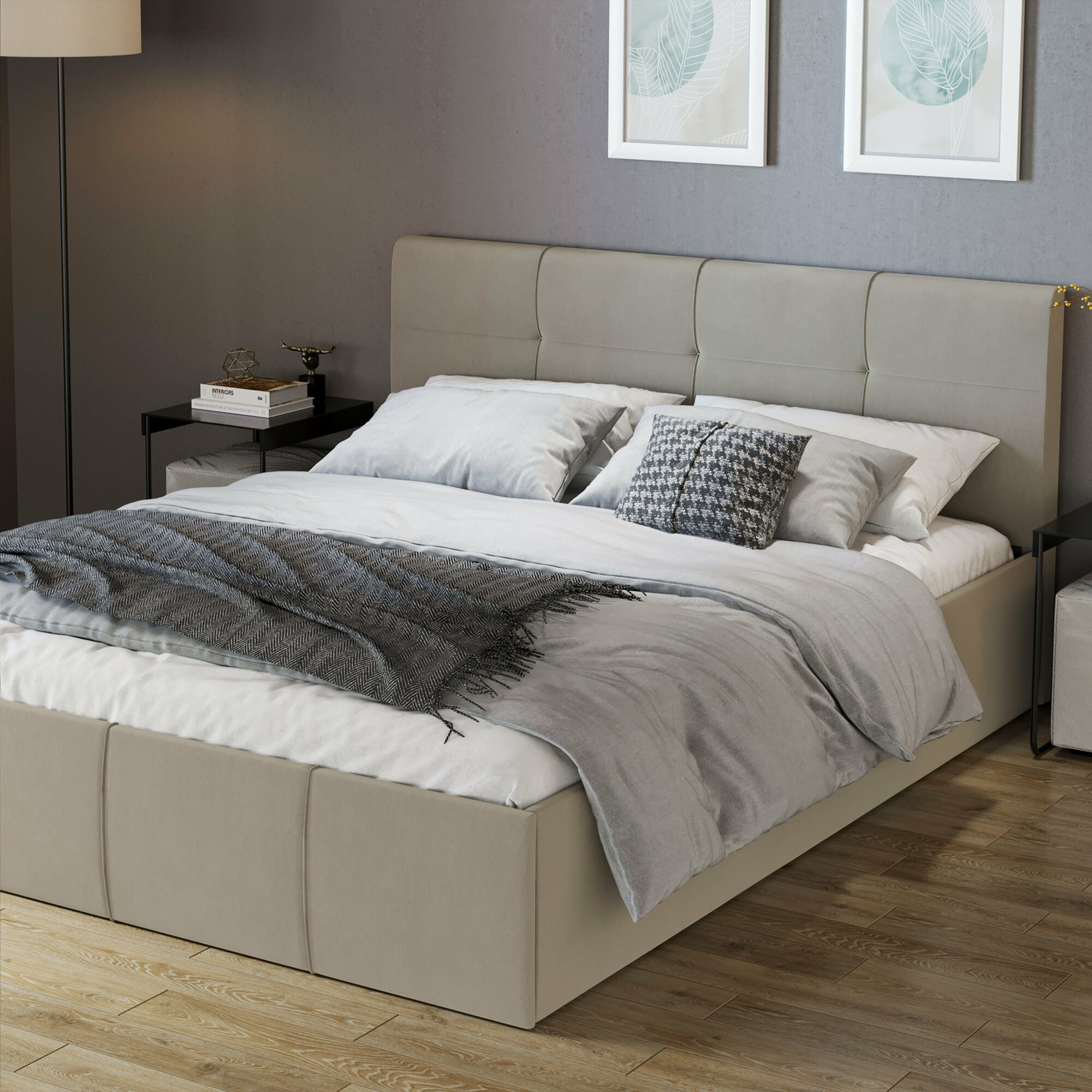 Отзывы на Кровать с подъемным механизмом, с мягкой обивкой и заглушиной бежевая 160х200 Лора Велюр Confetti Smoke