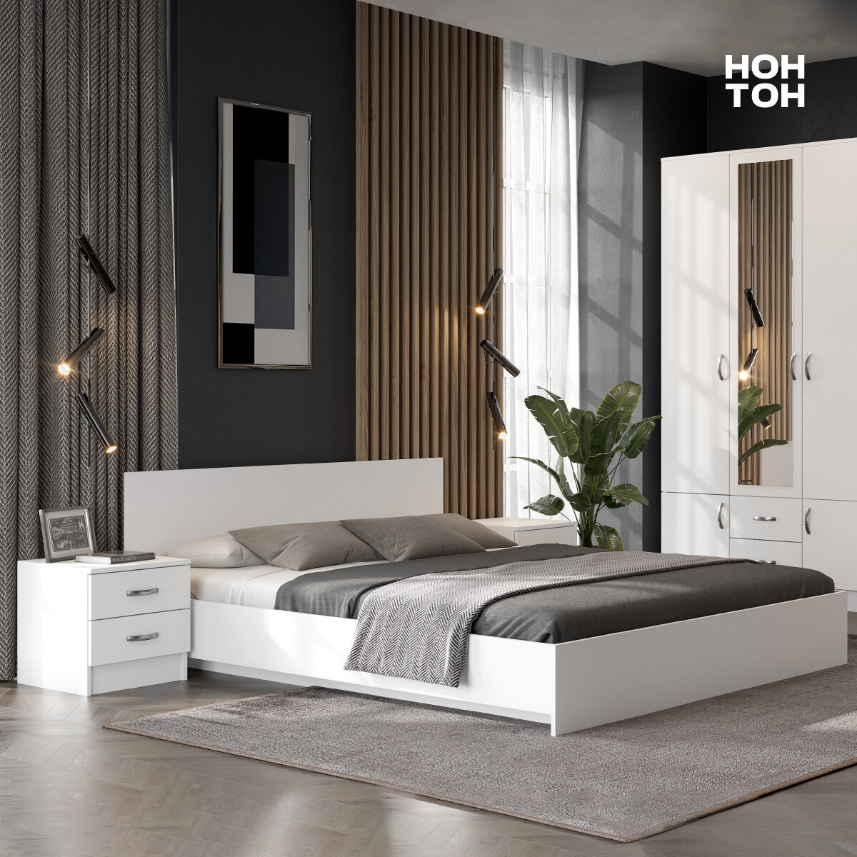 Кровать двуспальная Нонтон Ронда, 160*200 см, основание ДСП, белое дерево 7 190 ₽