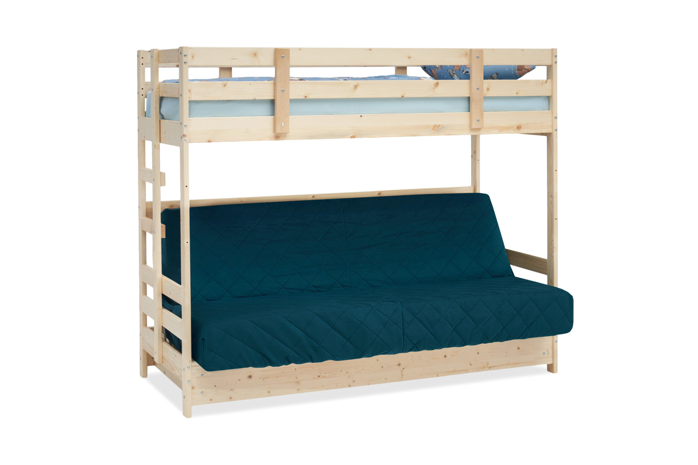 Двухъярусная кровать Боровичи-Мебель Массив с диван-кроватью; ПББ; синий / натуральный 96x197x170 см информация:
