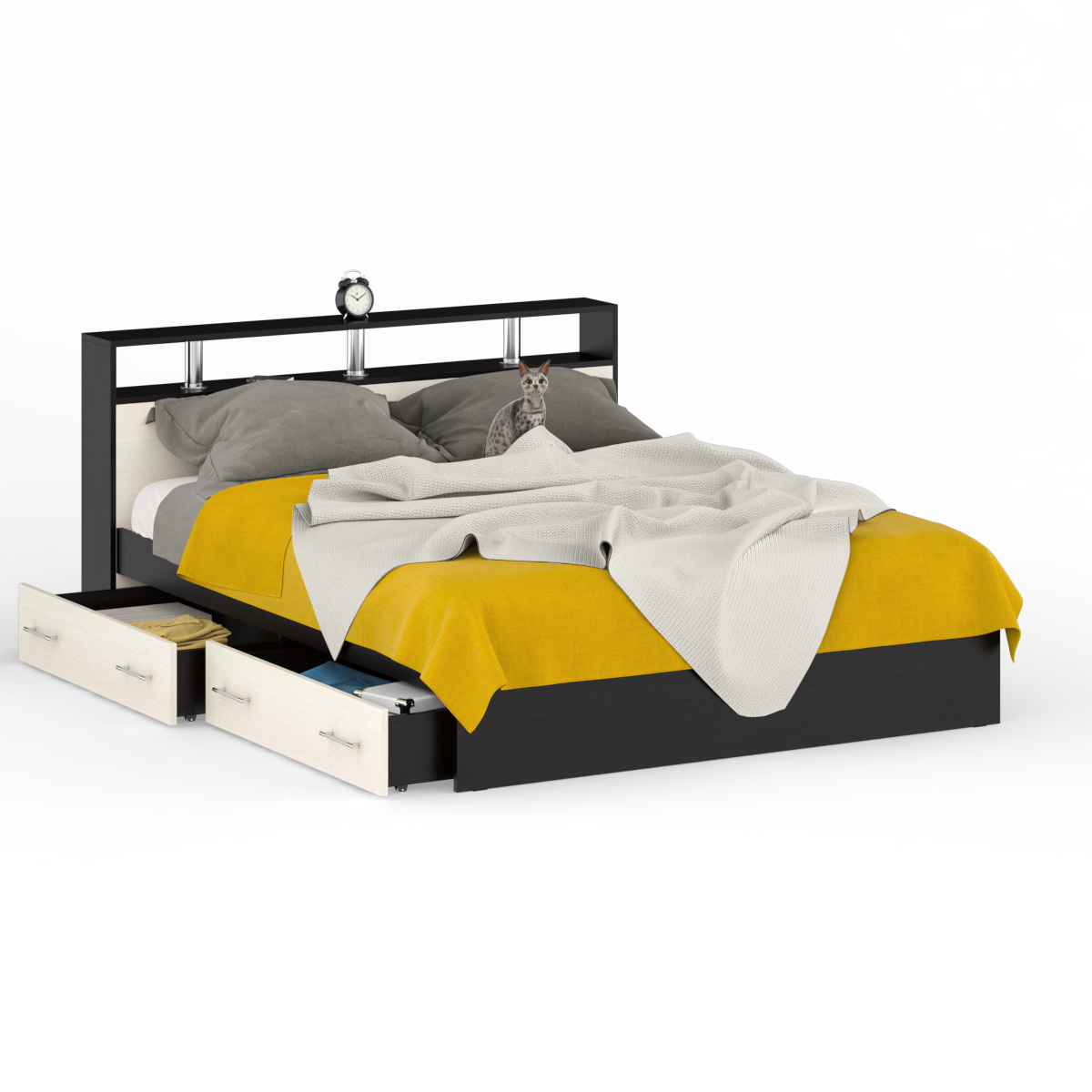 Кровать с ящиками Камелия 1800 цвет венге/дуб лоредо