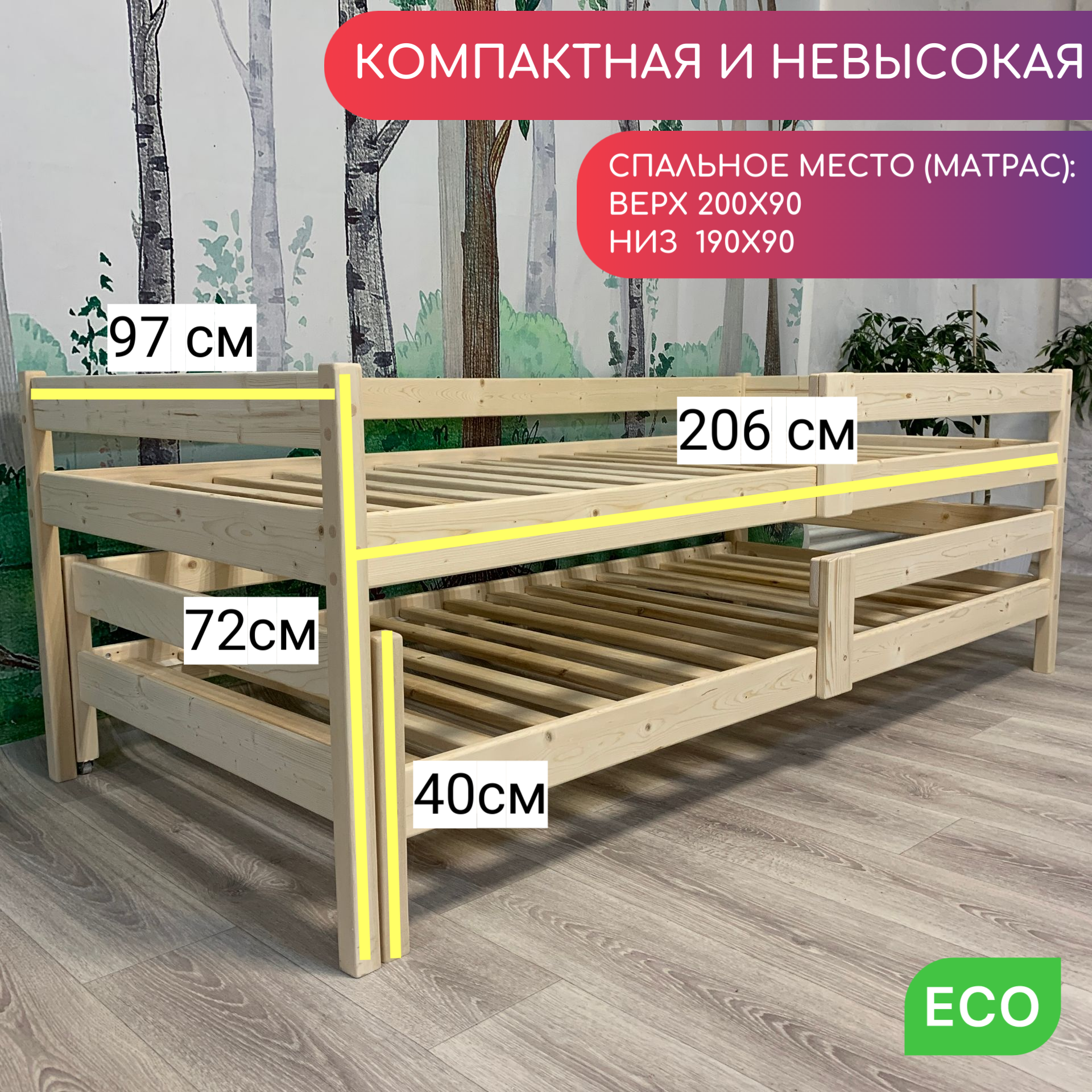 10 цен на Кровать выдвижная, кровать выкатная детская для двоих, двухъярусная кровать "Эсла" 90х200, 90х190 из массива дерева (без покрытия)