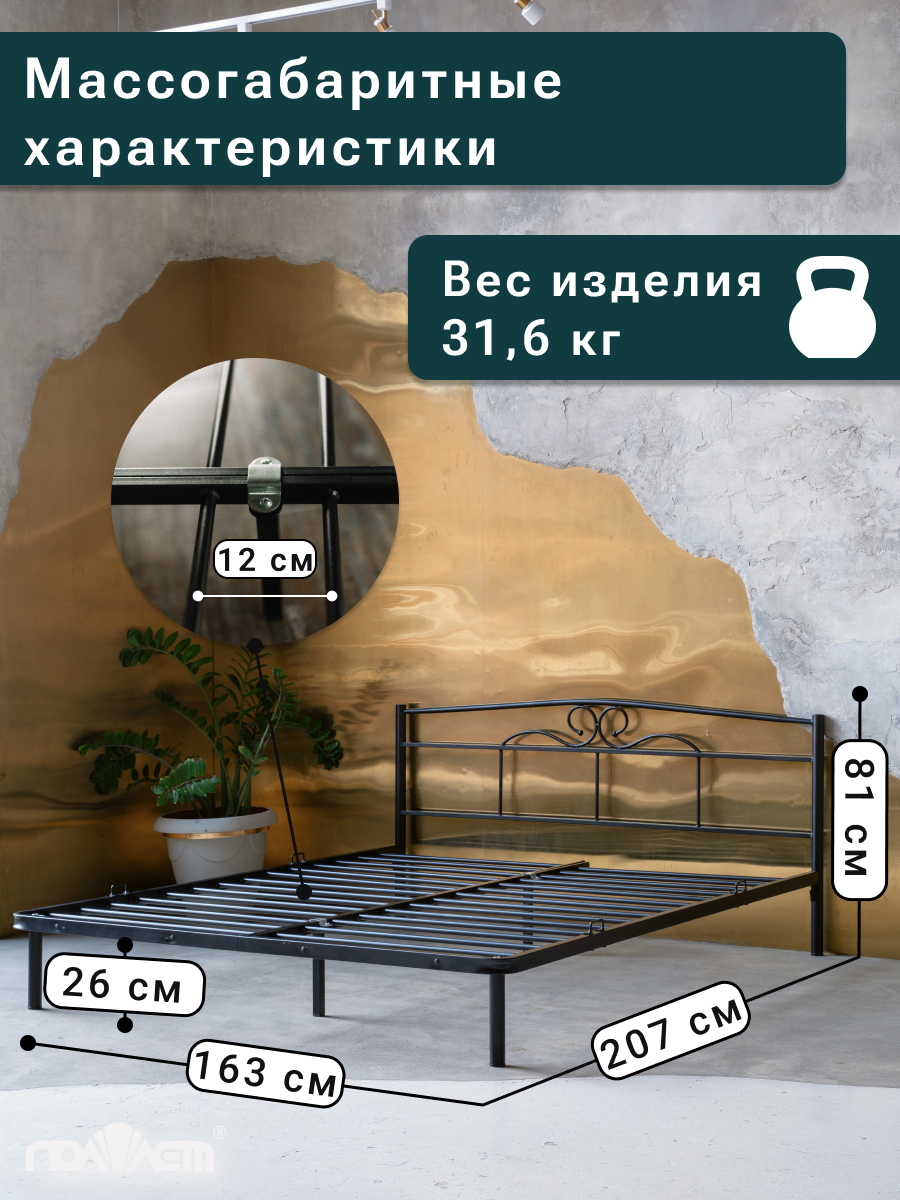 Кровать двуспальная металлическая "Марта", 160х200, на металлокаркасе, черная, усиленная информация: