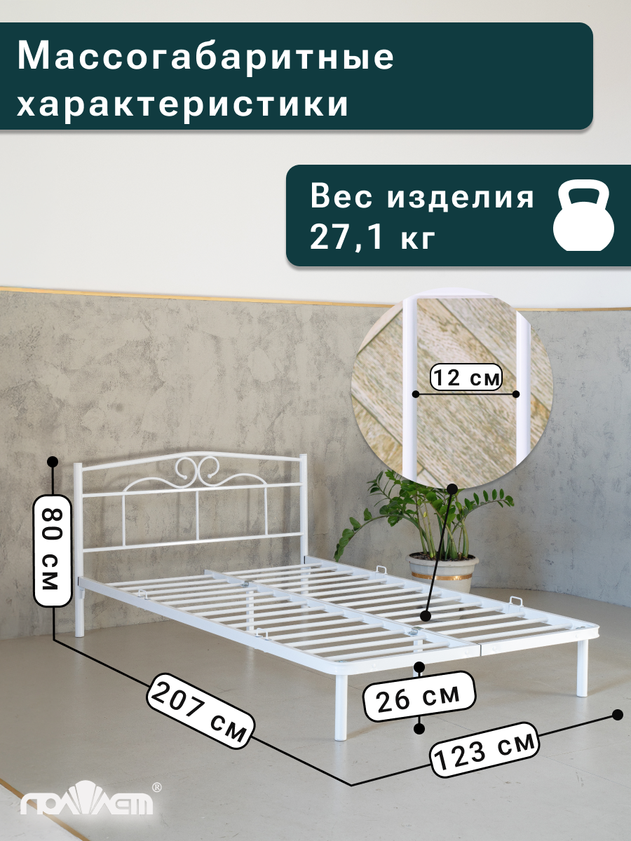 Отзывы на Кровать двуспальная металлическая 120*200 см Марта Поллет белая
