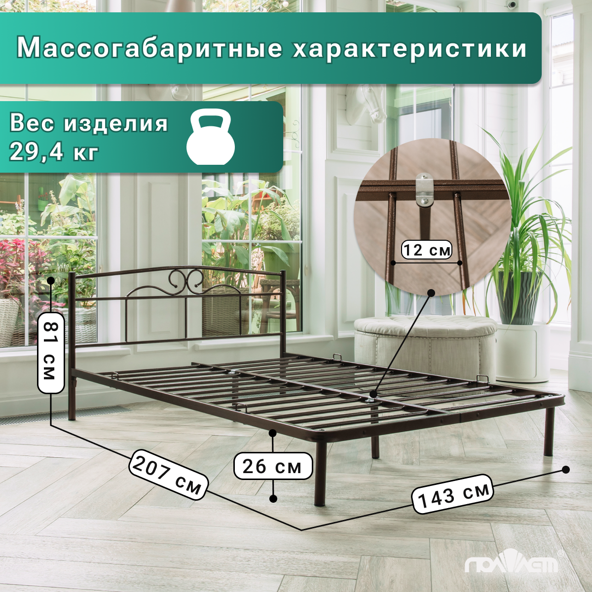 Кровать двуспальная металлическая 140*200 см Марта Поллет коричневая информация: