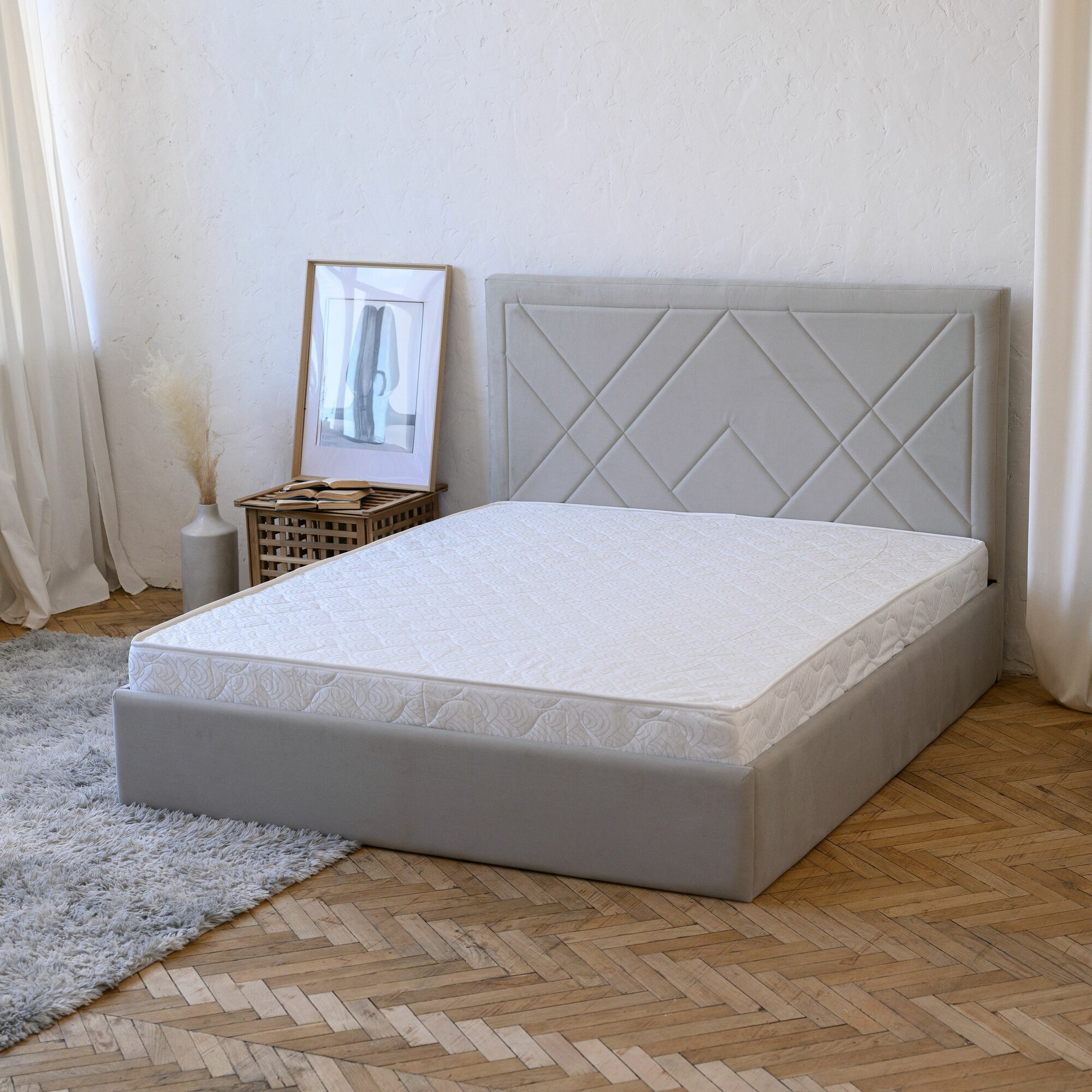 Отзывы на Кровать 180х200 c подъемным механизмом и бельевым ящиком Алекса светло-серый