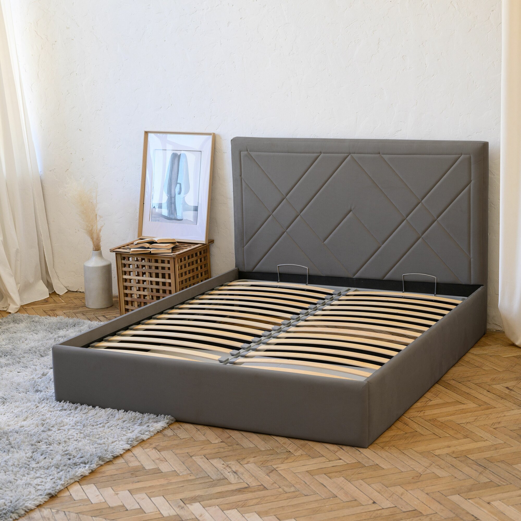 Отзывы на Кровать 140х200 c подъемным механизмом и бельевым ящиком Алекса темно-серый