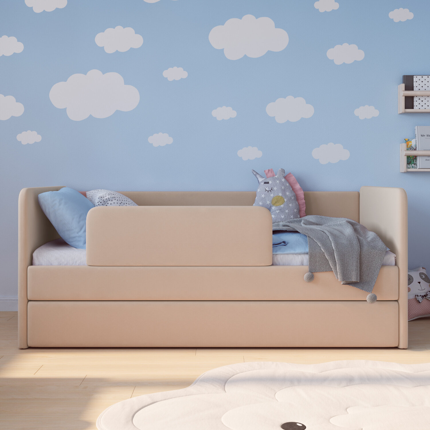 Кровать детская 180х80 Romack Jenny с бортиком и ящиком, с мягким изголовьем, цвет: светло-бежевый микровелюр 26 500 ₽
