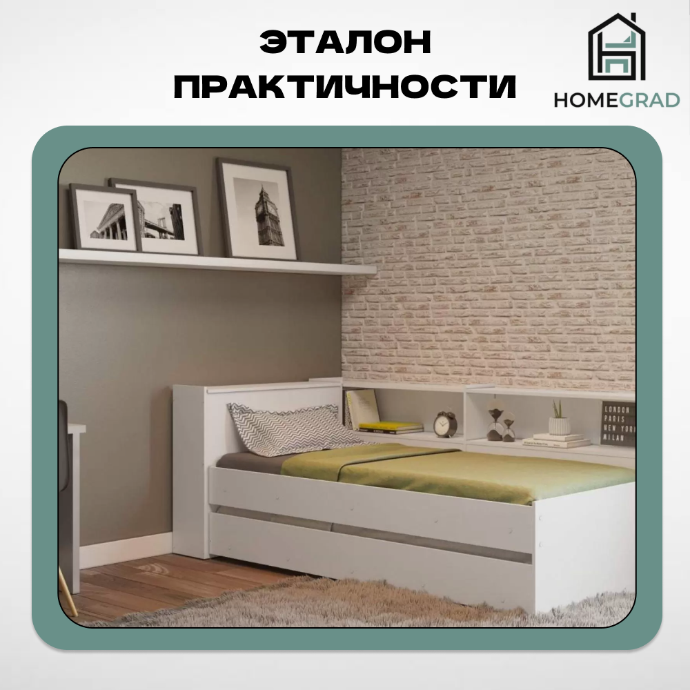 Кровать белая 900*2000 с прикроватным блоком Ksenia (Белый) HOMEGRAD информация: