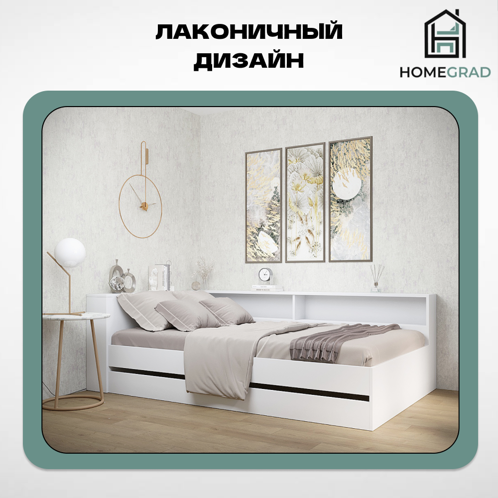 10 цен на Кровать белая 900*2000 с прикроватным блоком Ksenia (Белый) HOMEGRAD