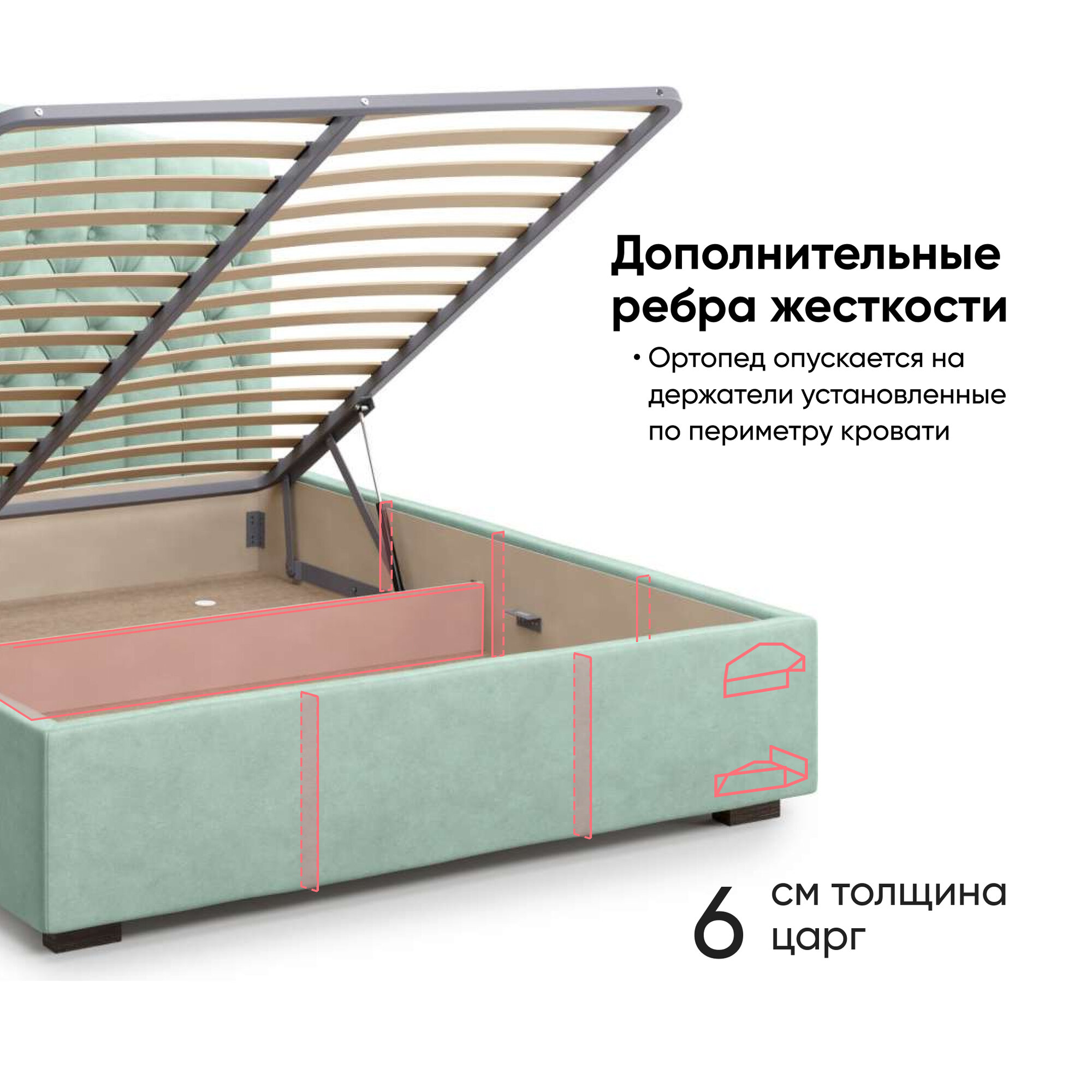 | Особенности | мягкое изголовье, с подъемным механизмом, с ящиком для белья |