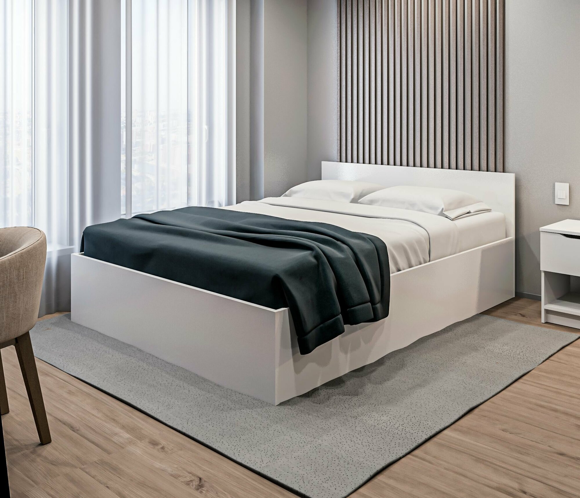 Кровать Скайс ящиками белый текстурный, 140х200 см