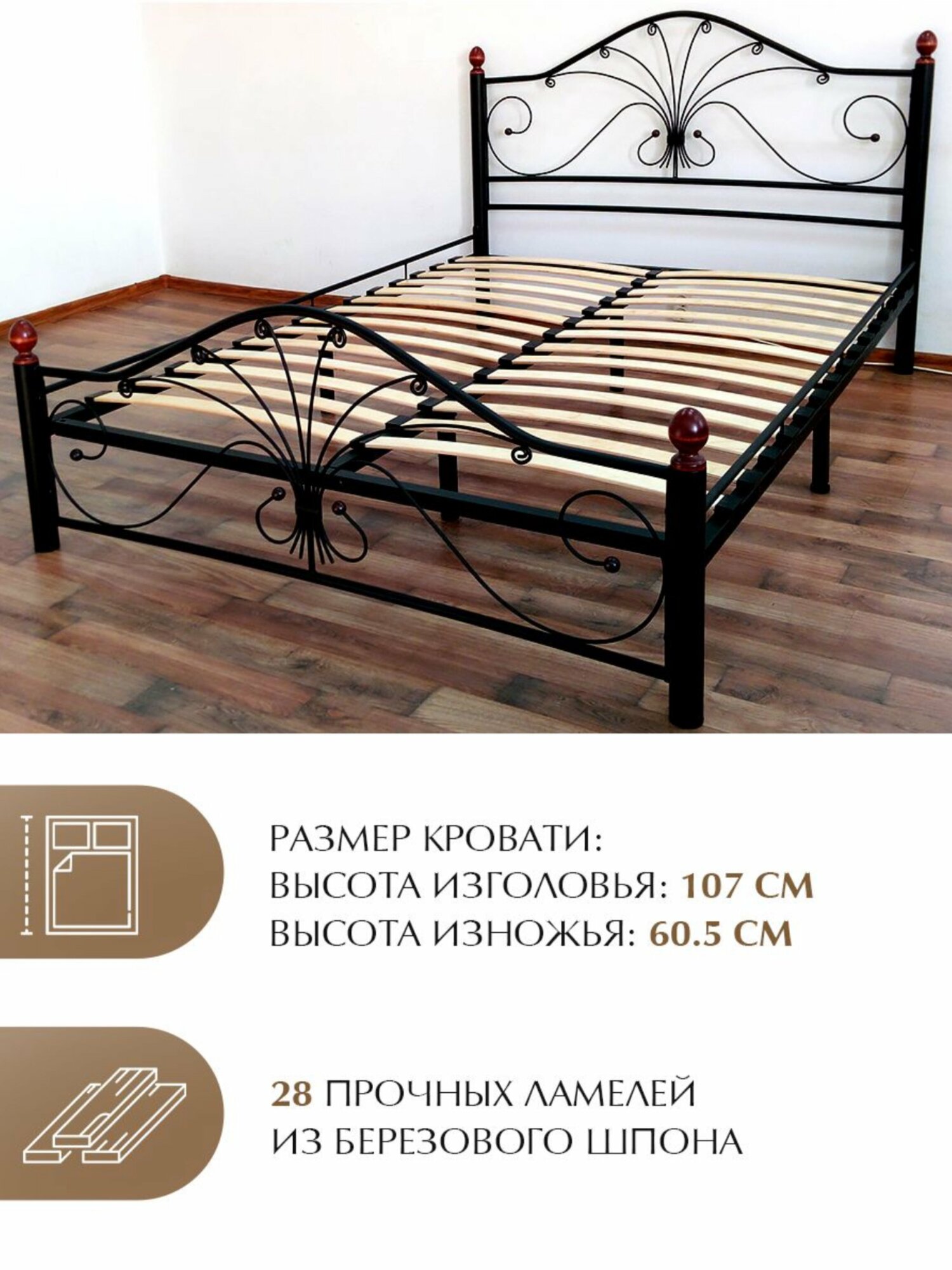 Двуспальная кровать, черная, железная, металлическая, 120х200 см информация: