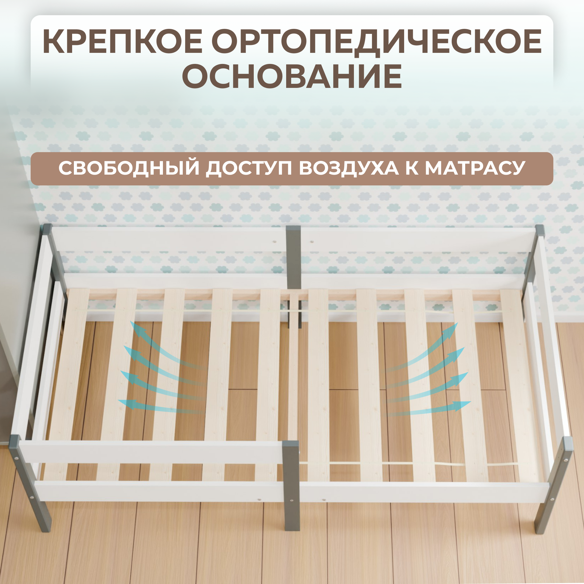 | Особенности | для детей, основание под матрас, с бортиком, с изножьем |