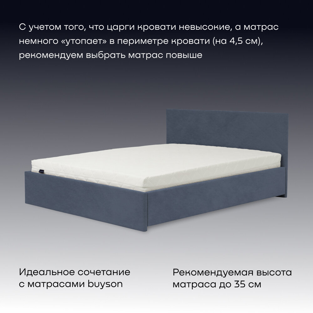 Двуспальная кровать buyson BuyRest 160х200 см, серо-синий, микровелюр информация: