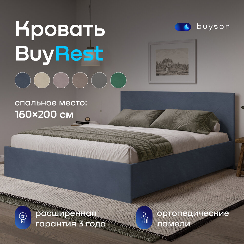 Отзывы на Двуспальная кровать buyson BuyRest 160х200 см, серо-синий, микровелюр