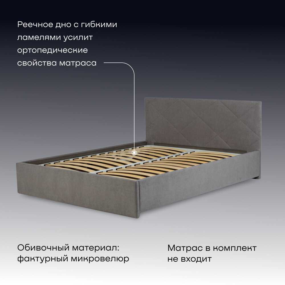 Двуспальная кровать buyson BuyRest 160х200 см, велюр, серый информация: