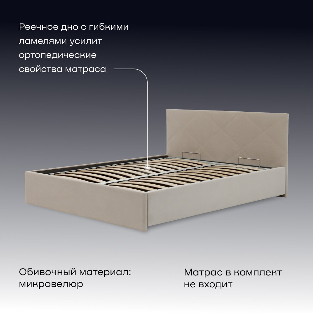 Двуспальная кровать buyson BuyRest 200х140, бежевая, микровелюр информация: