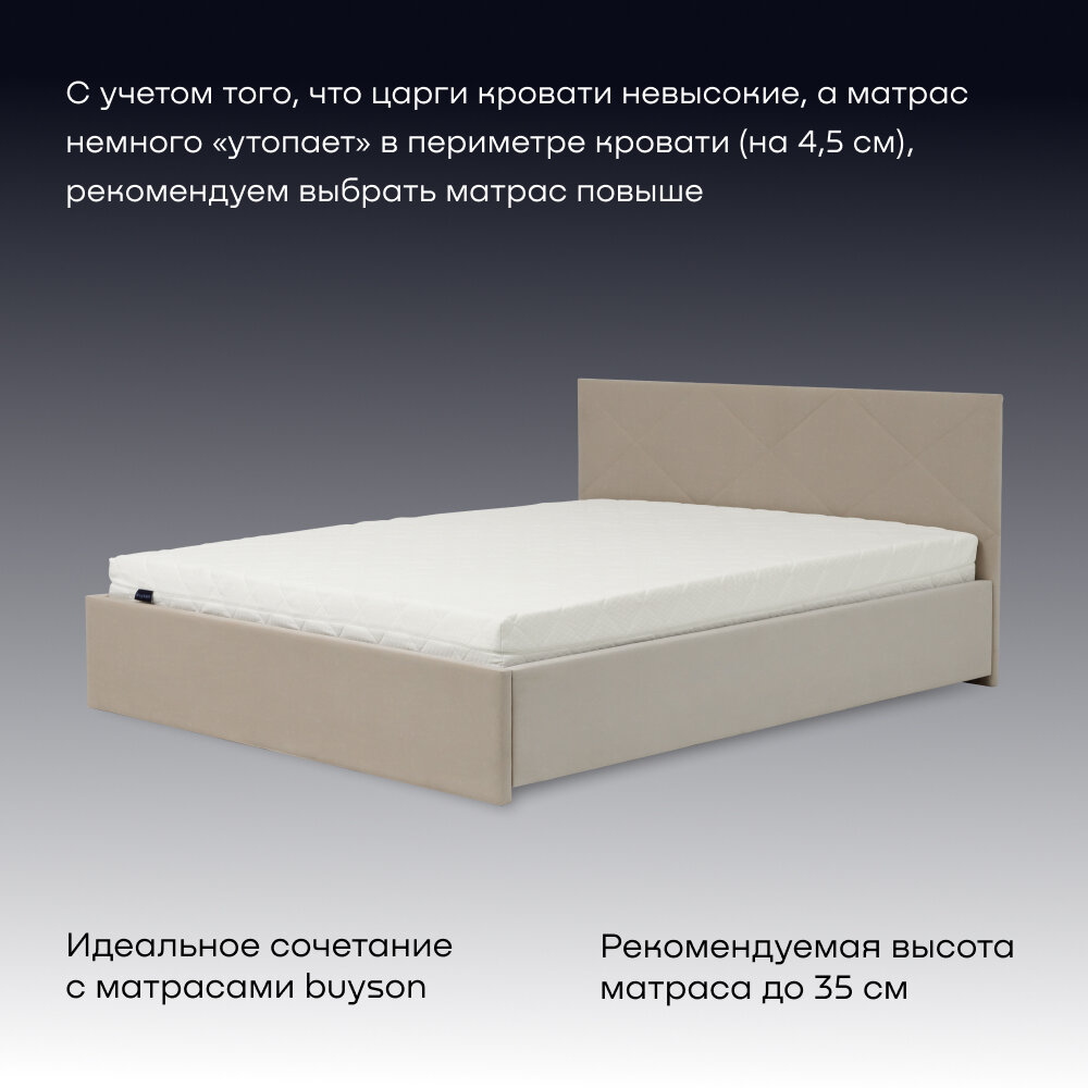 Отзывы на Двуспальная кровать buyson BuyRest 200х140, бежевая, микровелюр