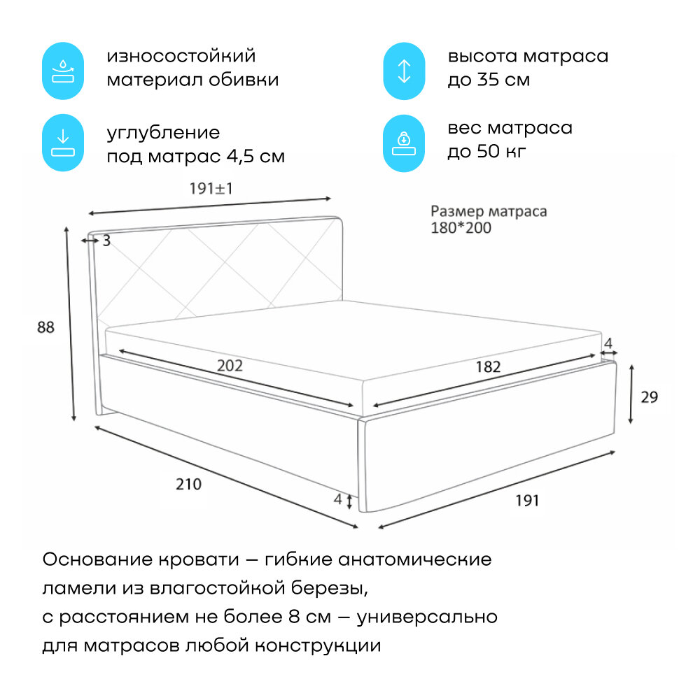 Двуспальная кровать buyson BuyRest 180х200 см, серо-синий, микровелюр 26 273 ₽