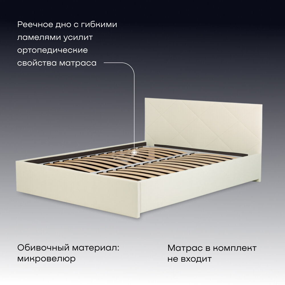Двуспальная кровать buyson BuyRest 160х200 см, микровелюр, слоновая кость 24 882 ₽