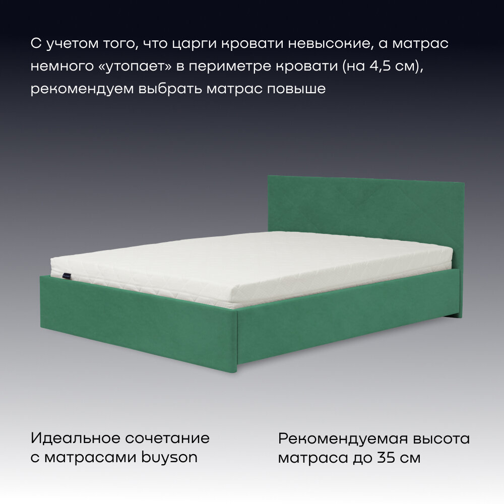 Двуспальная кровать buyson BuyRest 160х200 см, изумруд, микровелюр информация:
