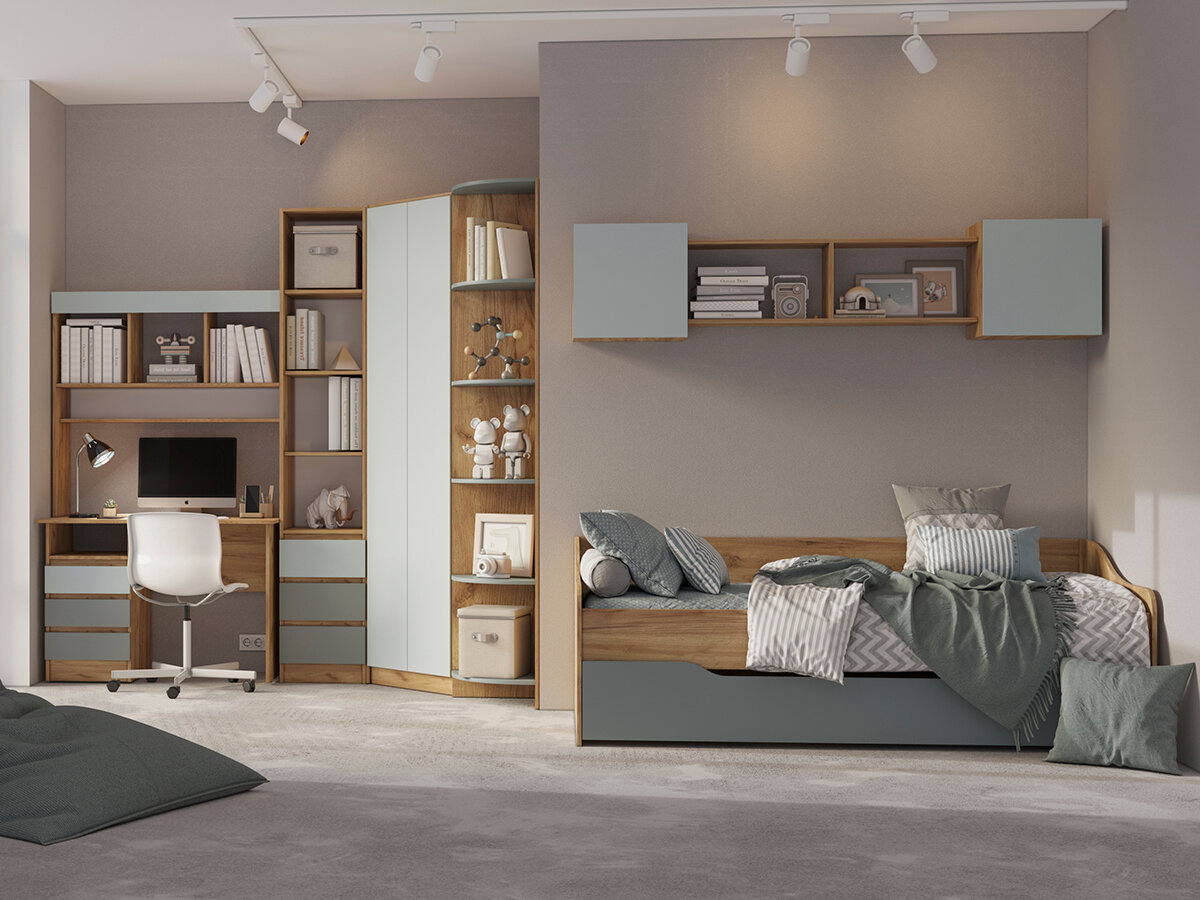 Кровать детская выдвижная Нонтон Челси Color, 90*200 см, дуб крафт / сумеречный голубой 11 890 ₽