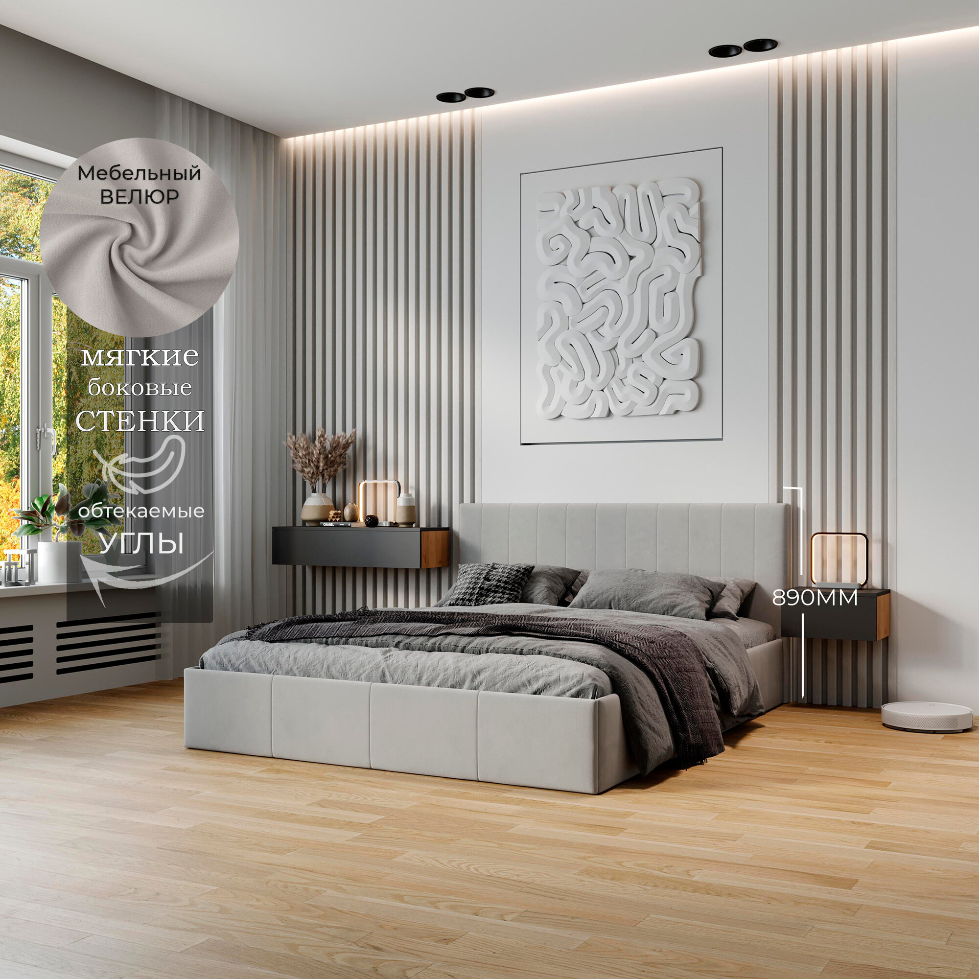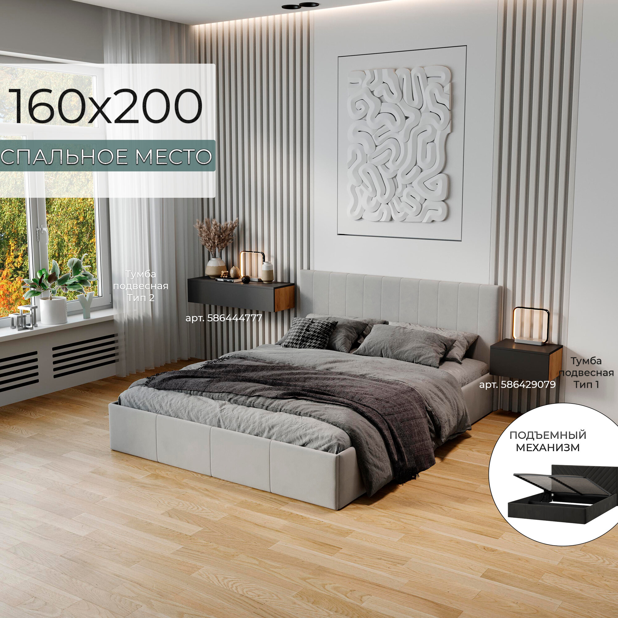 Кровать двуспальная ТриЯ 160х200 с подъемным механизмом, Айрис, Велюр Confetti Silver информация:
