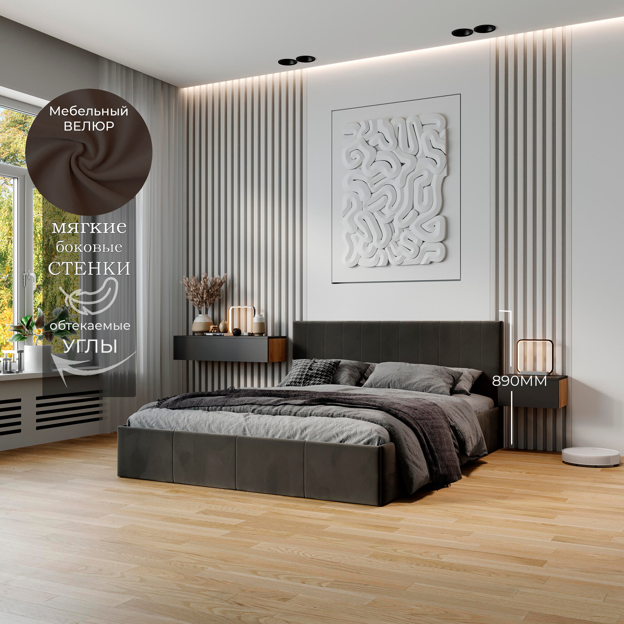 10 цен на Кровать двуспальная ТриЯ 160х200 с подъемным механизмом, Айрис, Велюр Confetti Stone