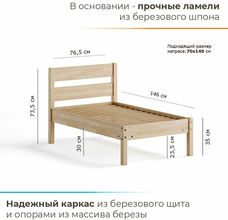 Кровать-тахта "ДомаКлёво Мечта" 80*200, массив берёзы, без обработки, высота изголовья 73 см 18 046 ₽