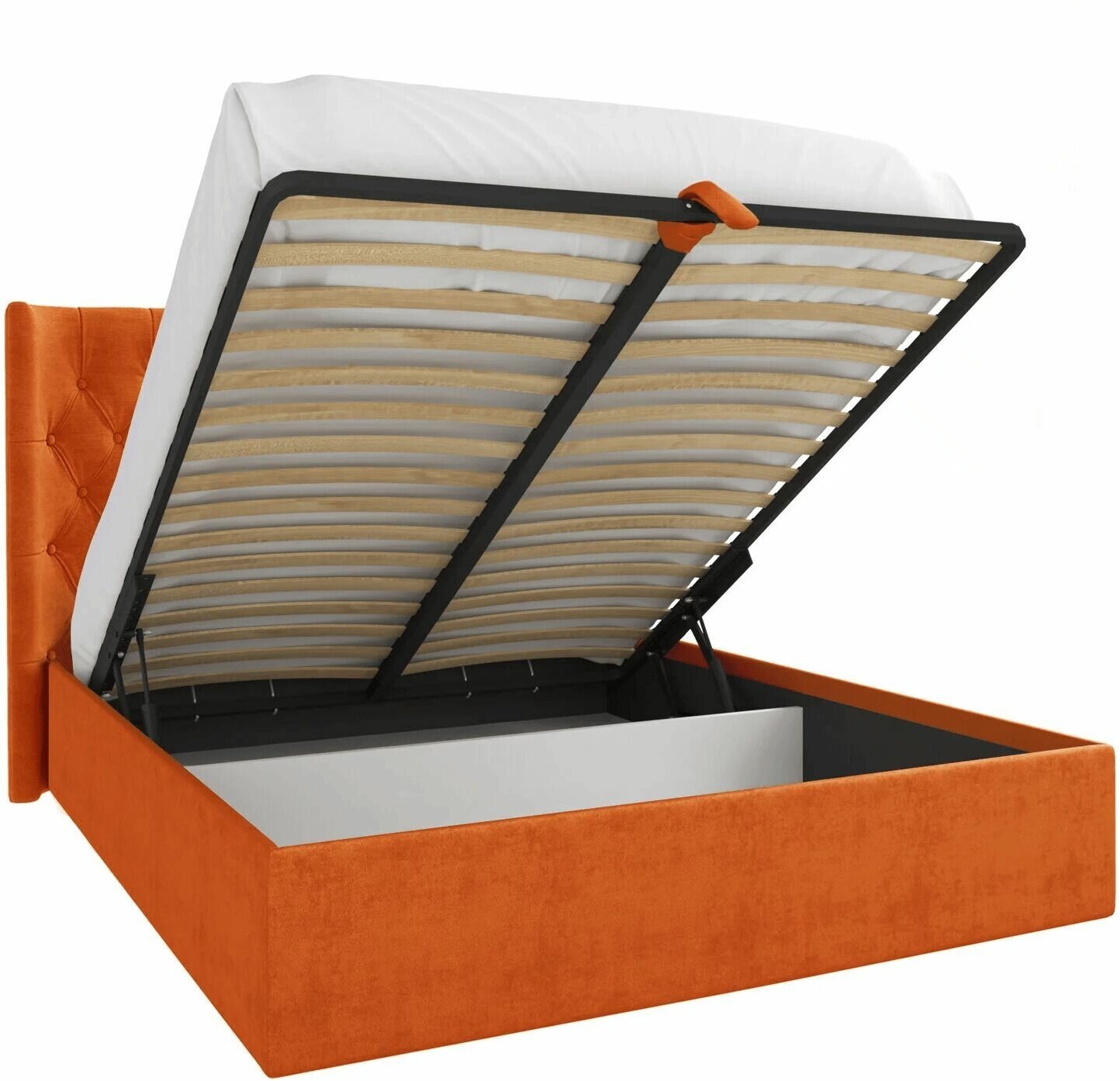 Кровать двуспальная 140Х200 см Barbara, с подъемным механизмом, FABRO, с ортопедическим основанием, с мягким изголовьем, Оранжевый 43 570 ₽
