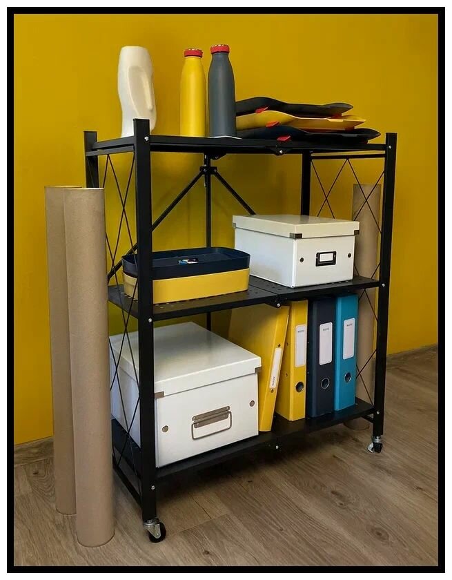 Отзывы на Этажерка на колесиках металлическая (3 полки) / Складной металлический стеллаж, LettBrin 73 х 40 х 88.5 см, 3 яруса, черный