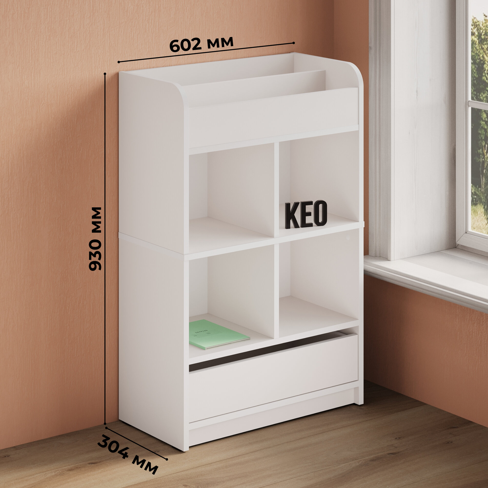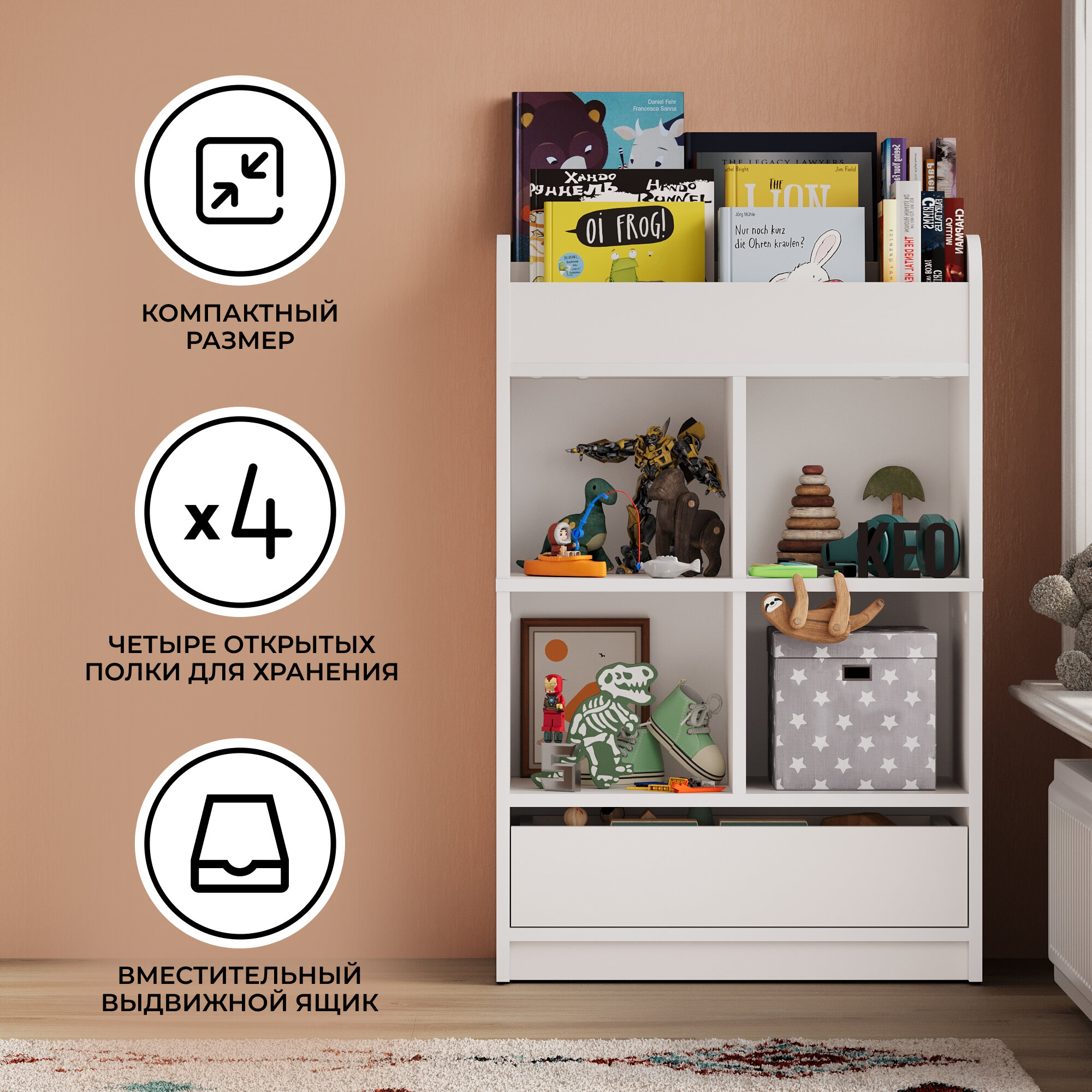 10 цен на Стеллаж напольный Кео СТЖ-433 белый молочный с ящиком полками для игрушек книг в детскую для спальни балкона 930х304х602 мм